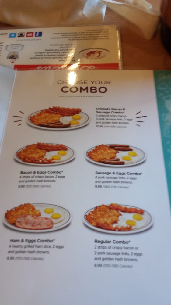 Two eggs* your way, 2 custom-cured hickory-smoked bacon strips or 2 pork sausage links & 2 fluffy buttermilk pancakes. Ordering Monday Friday? Check out our Breakfast Faves Combo in the House Faves section for a specially priced option!