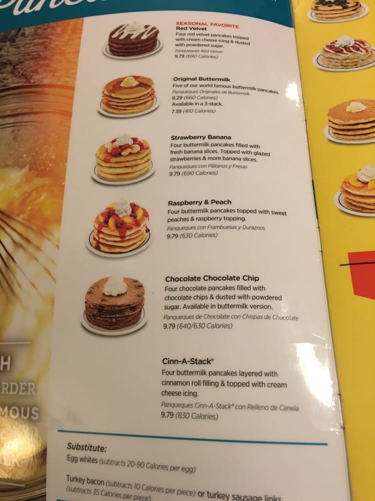 8 of our world famous buttermilk pancakes, 4 servings each of scrambled eggs and golden hash browns, 8 hickory-smoked bacon strips, and choice of 2 pancake toppings. Serves 4. Available for IHOP N GO only. Not available for dine-in.