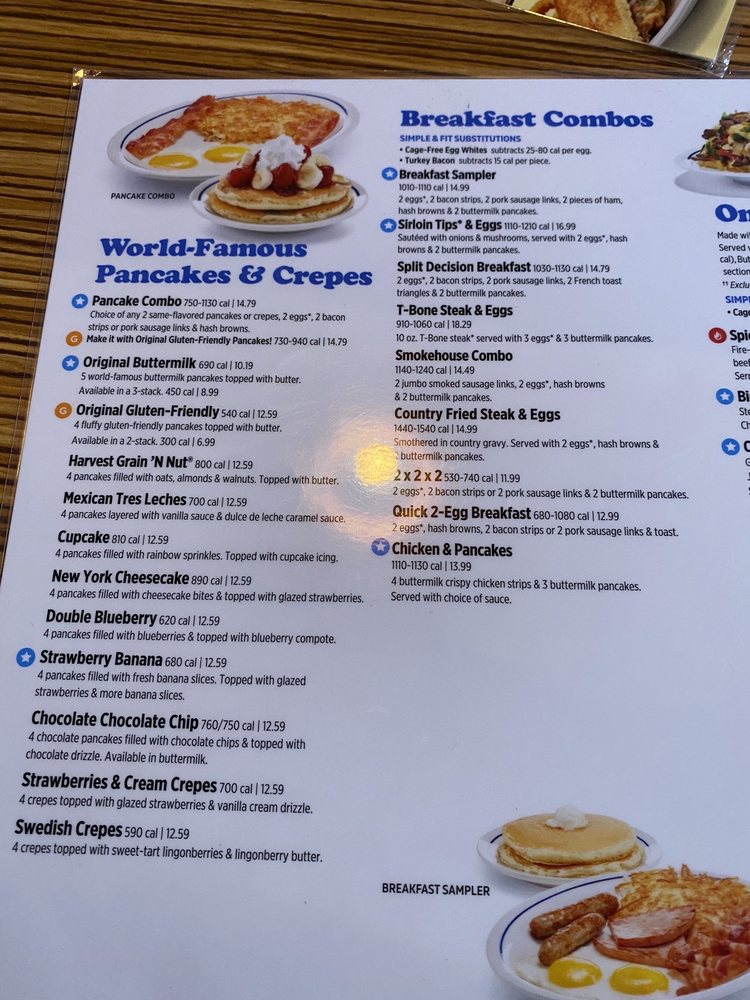 8 of our world famous buttermilk pancakes, 4 servings each of scrambled eggs and golden hash browns, 8 pork sausage links, and choice of 2 pancake toppings. Serves 4. Available for IHOP N GO only. Not available for dine-in.